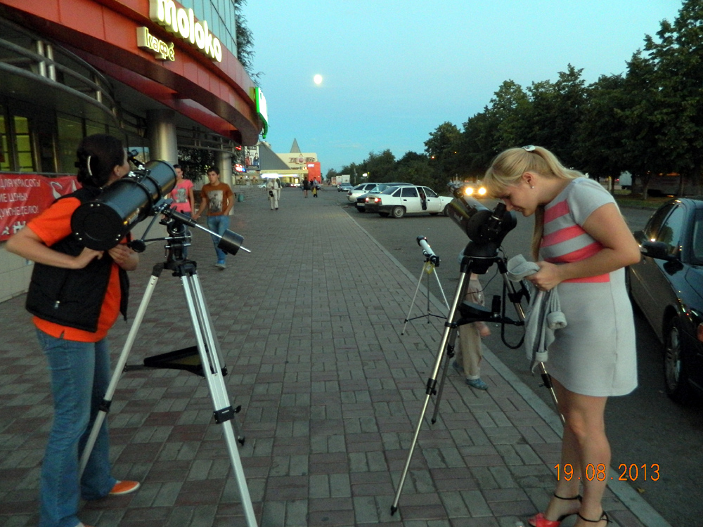 На ДОА все желающие могли изучать звезды и планеты d телескопы Levenhuk и Bresser. Ясная погода позволила наблюдать изумительно яркую Луну, а также другие космические объекты.
