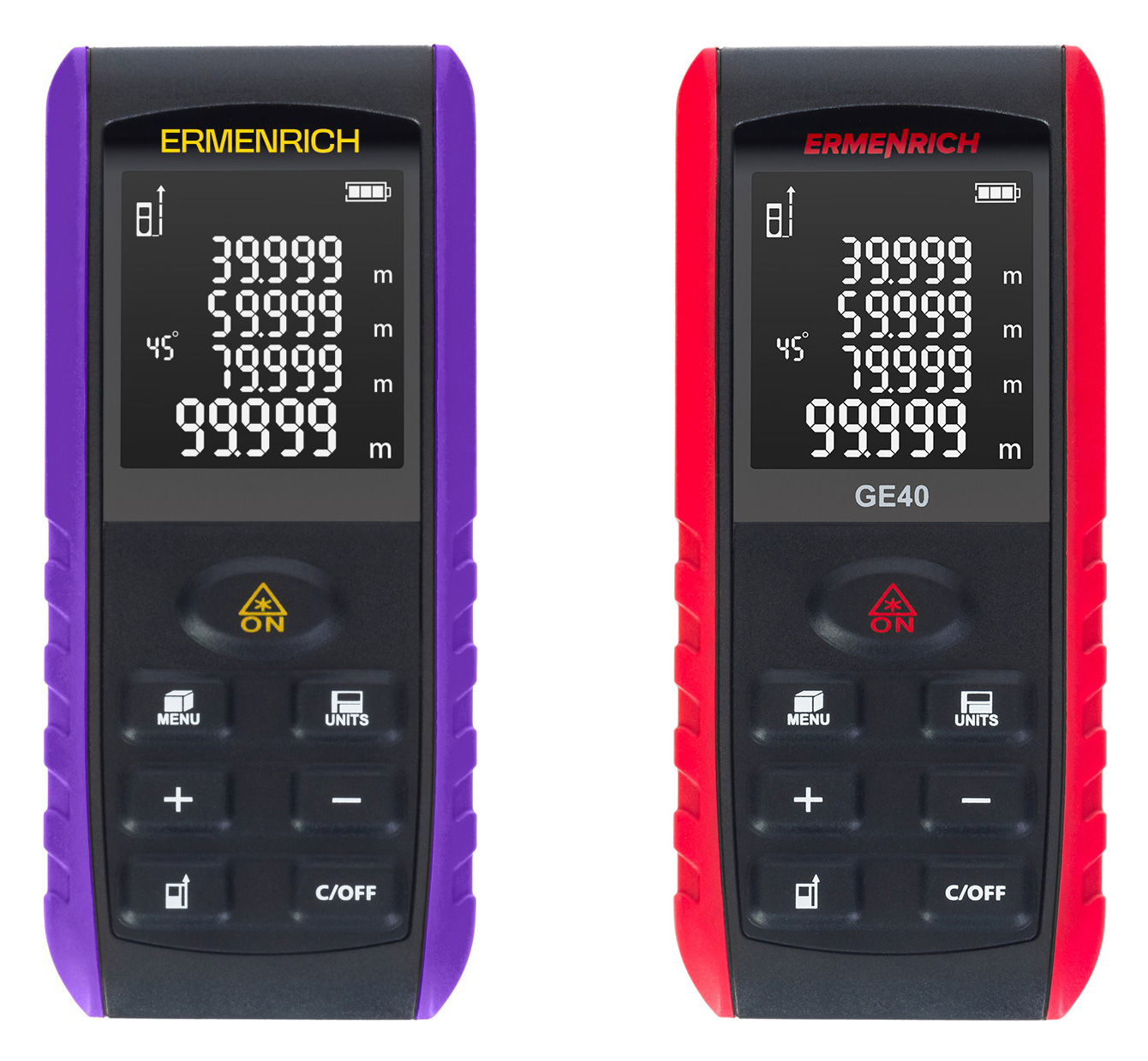 Лазерная рулетка Ermenrich Reel PRO GE40 – практичный, многофункциональный инструмент для строительных, ремонтных, инженерных работ. С ее помощью можно не только измерять расстояние в пределах 40 метров, но и вычислять площадь, объем, углы. А когда нужно произвести измерения в сложных условиях, поможет функция «Пифагор», которая вычисляет расстояние по промежуточным замерам.